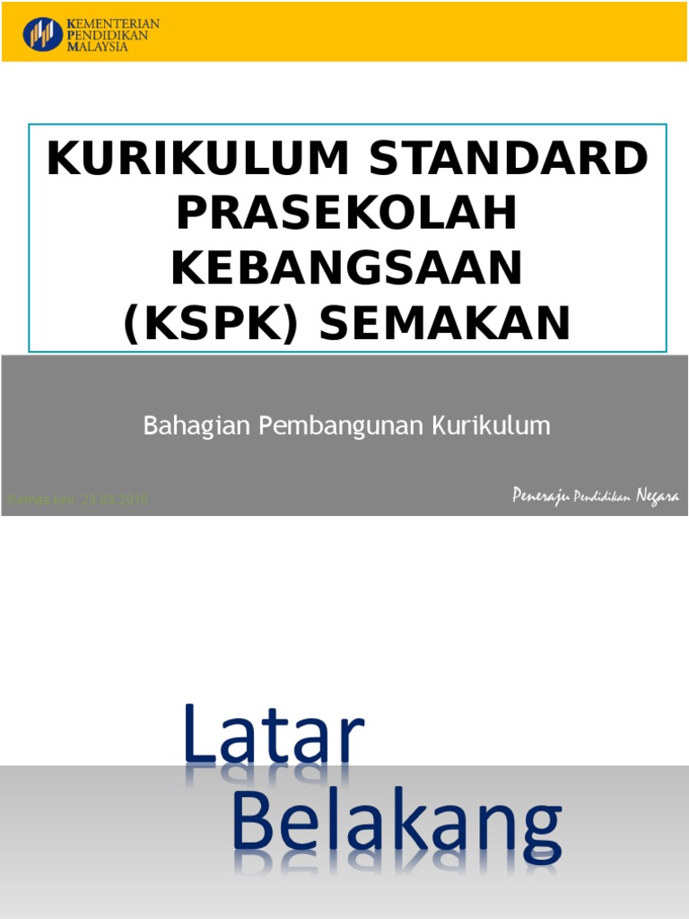 Enam tunjang tersebut merupakan domain utama yang menyokong antara. Perkembangan kurikulum sekolah rendah • kurikulum standard sekolah rendah (kssr) • kurikulum bersepadu sekolah pembaharuan kssr (semakan) penambahbaikan kandungan mengikut trend global dan tanda aras antarabangsa kandungan aspek kurikulum. Dokumen standard kurikulum dan pentaksiran (dskp) kurikulum standard prasekolah kebangsaan (kspk) pendidikan khas adalah wadah utama yang menjadi panduan guru dalam mendukung hasrat negara bagi menyediakan pendidikan prasekolah kepada generasi masa kini dan. Kerangka kurikulum standard prasekolah kebangsaan (kspk). Kandungan kspk adalah berasaskan enam tunjang
