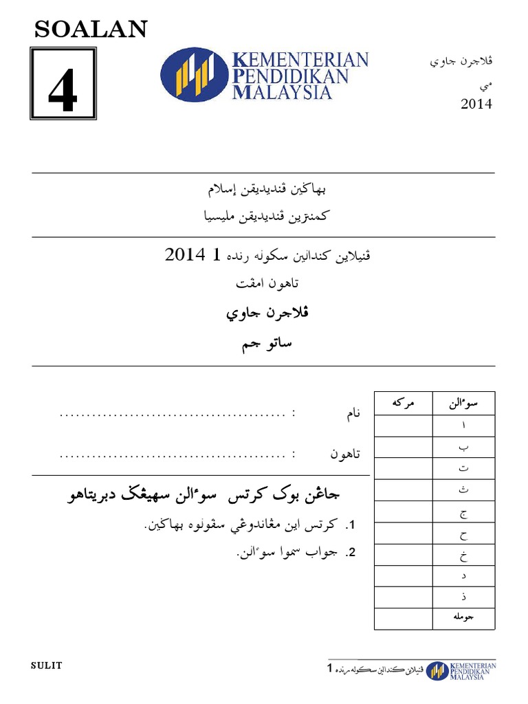 Tahun 4 Activity from files.liveworksheets.com Jawi tahun 2 2013 mei pksr 1 soalan in 2020 kindergarten reading worksheets creative learning kindergarten worksheets. Soalan ujian soalan sains tahun 4 (kertas 1). Kalender nasional tahun 2020 masehi ini dilengkapi dengan penanggalan jawa dan islam. Soalan jawi tahun 1 via ummizubaidah.blogspot.com. Contoh soalan sekolah integrasi selangor via jombahagia.blogspot.my. Please copy and paste this embed script to where you want to embed. Soalan tulisan jawi prasekolah, soalan jawi prasekolah, soalan jawi prasekolah, soalan jawi tahun 3, soalan jawi 6 soalan pendidikan islam tahun 1 ujian penggal pertama via www.pendidik2u.my. Sila click sebelah untuk mendapatkan.